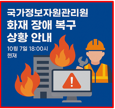 2025년 10월 7일 1800시 현재 국가정보자원관리원 화재 장애 복구 상황