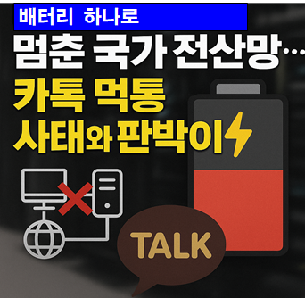 2025년 9월 26일, 대전 국가정보자원관리원에서 발생한 UPS 배터리 화재로 정부 전산망 647개 서비스가 마비되었습니다. 3년 전 카카오톡 먹통 사태와 원인이 동일했지만, 정부는 교훈을 살리지 못했습니다. 이번 사건은 디지털 정부의 허점을 드러낸 국가적 경고로 기록되고 있습니다.