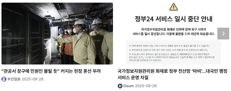 9월 26일 발생한 대전 국가정보자원관리원 화재로 "분유·생리대도 못 산다?" 국가 전산망 먹통 사태 ,전산망 불 하나로, 바우처·장기이식·화장예약까지 모두 멈춘 현실…"애 생리대 사려고 했는