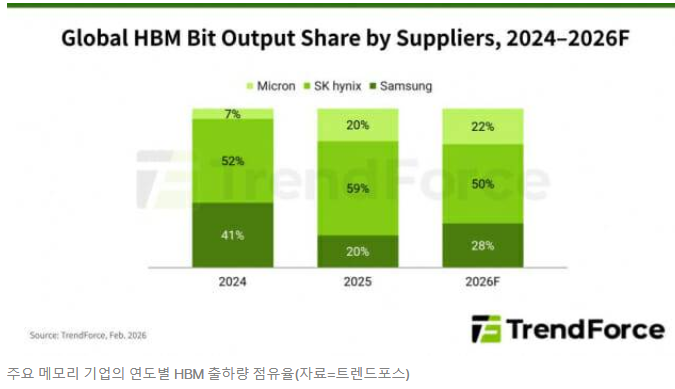 - 삼성전자: 점유율이 20%에서 28%로 급등하며 가장 큰 폭의 성장을 기록할 것으로 보입니다. 'HBM의 명가' 타이틀을 되찾으려는 총공세가 시작된 셈입니다.