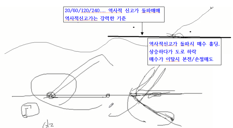 - 역사적 신고가를 돌파할 때 매수 후 홀딩