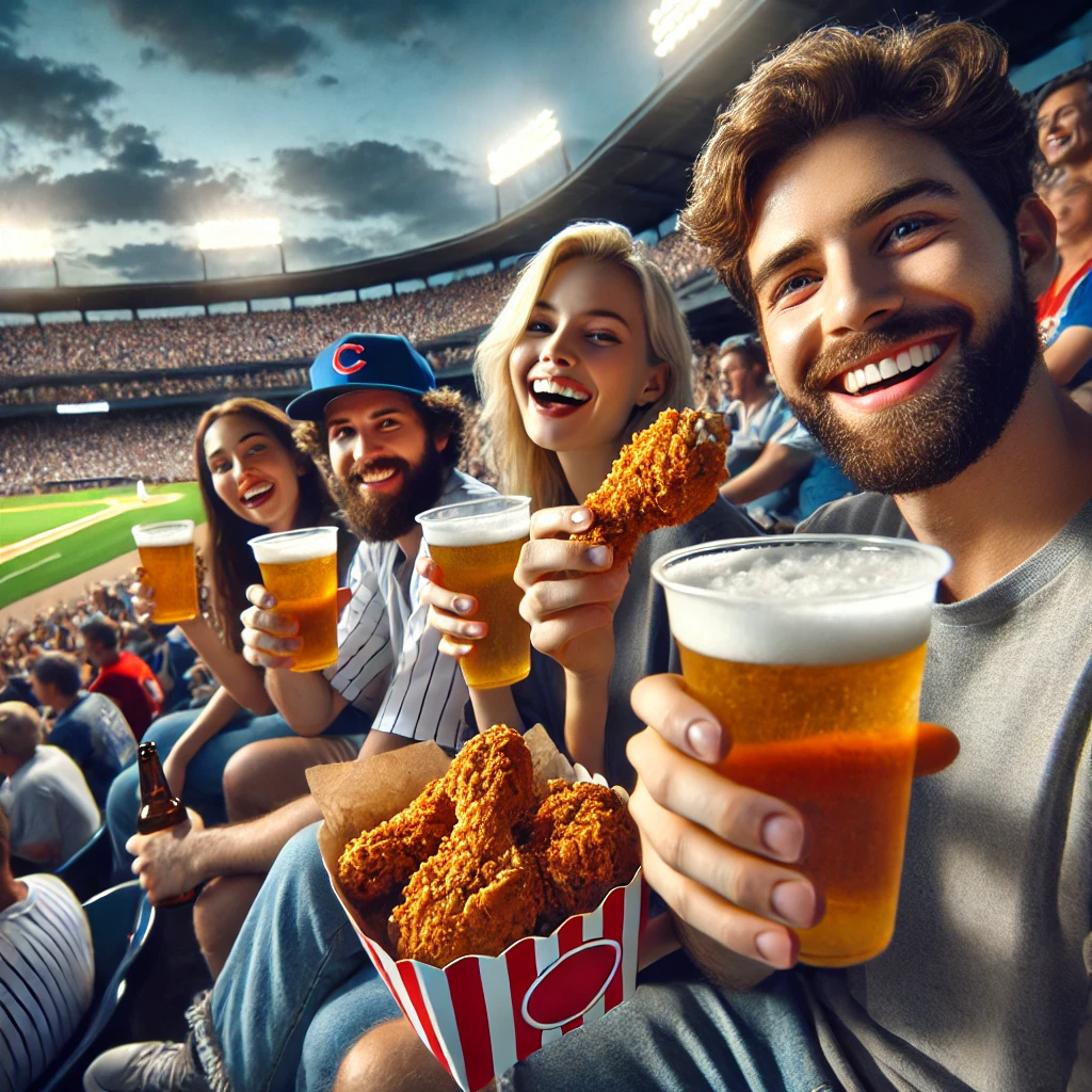 ‘치맥’은 야구장에서 빠질 수 없는 조합입니다. 바삭한 후라이드나 양념치킨 한 박스에 시원한 생맥주 한 잔이면 분위기 최고! 일부 구장은 치킨 브랜드와 제휴해 현장 구매도 가능합니다.