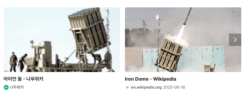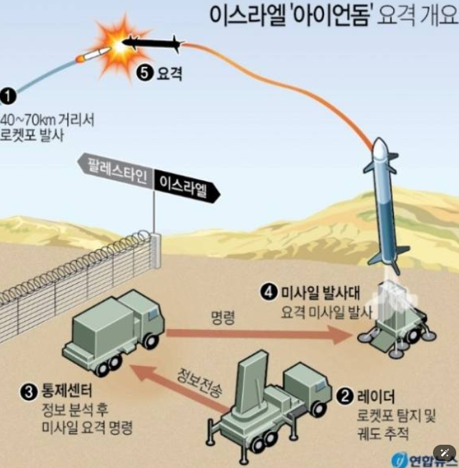 - 아이언돔: 단거리 로켓 요격 (사거리 4~70km)