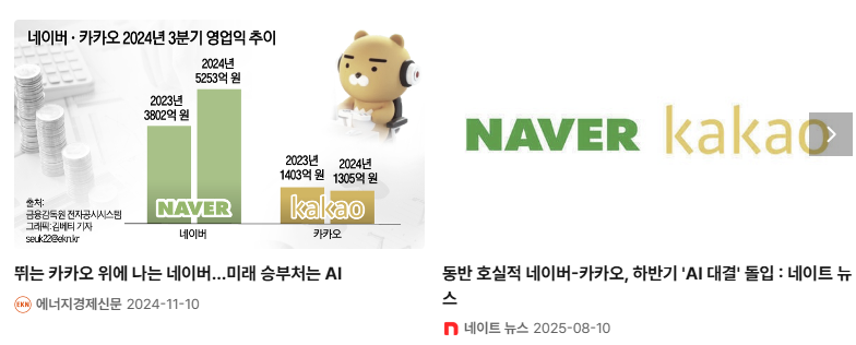“네이버는 LLM 기반 기술 내재화, 카카오는 플랫폼 활용도 극대화. 둘 다 강력한 모멘텀 확보.”