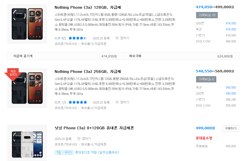 | Nothing | Phone 3 | 79만원 | 약 72만원 | 약 58만원 |