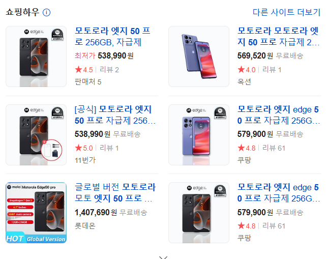 | 모토로라 | Edge 50 Pro | 65만원 | 약 59만원 | 약 49만원 |