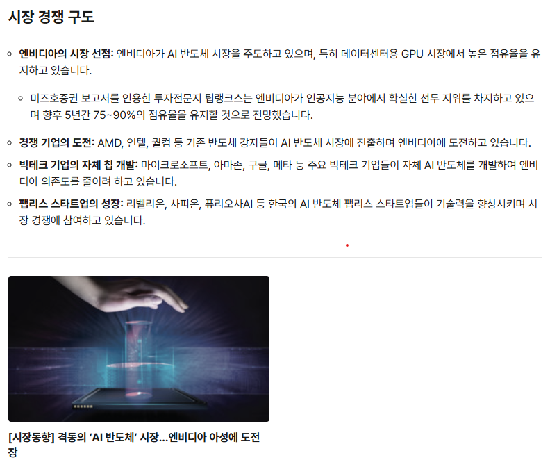 - 주요 플레이어: 엔비디아, AMD, 인텔, 구글, 삼성의 기술력 비교