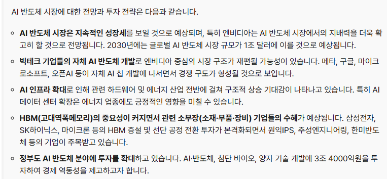 💡 즉, AI 반도체는 ‘디지털 에너지’와 같습니다. 공급이 막히면 AI 산업 전체가 멈춥니다. 이 점이 바로 투자 기회의 본질입니다.