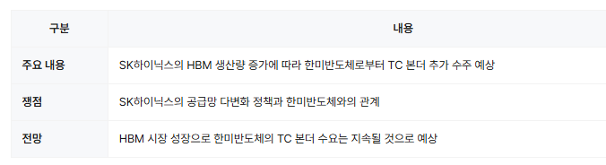 - [관련 글] 한미반도체 주가 반등 신호? SK하이닉스와 HBM TC 본더 재계약 가능성 부각