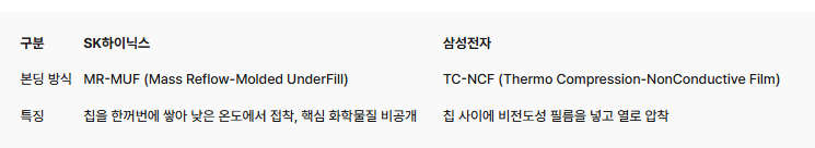 - SK하이닉스의 HBM 기술 선도: SK하이닉스는 HBM3E(5세대) 12단 제품을 주요 고객사에 공급하며 기술력을 인정받고 있다.