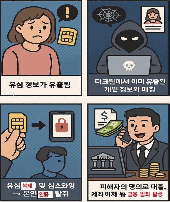 ③ 가짜 신분증 제출로 유심 재발급 → 명의 도용 및 대출 실행