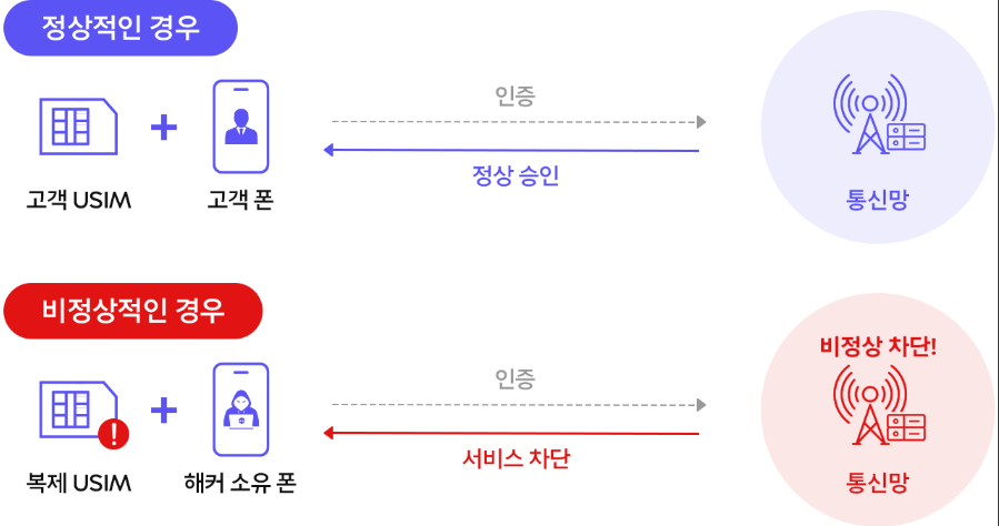 | 보안 기능 | 자동 차단 + 알림 | 유심 복제, 명의 도용 가능 |